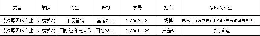 2024年秋因退伍复员申请转专业学生名单公示如下: