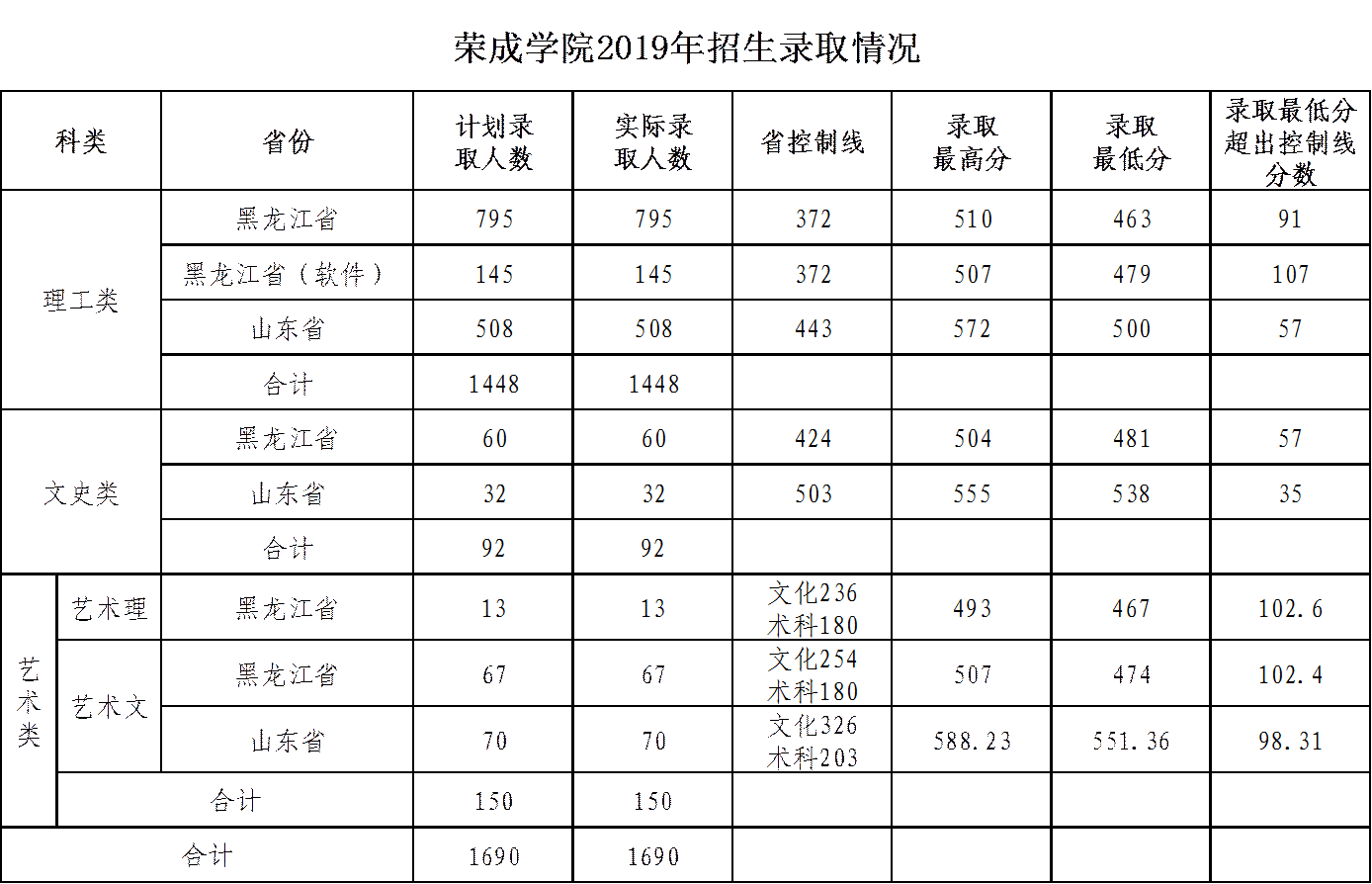 截止8月1日,荣成校区2019年招生录取工作已圆满结束。荣成校区2019年计划招收普通本科1690人,其中理工类1448人,文史类92人,艺术类150人,实际录取情况与计划招生情况一致。